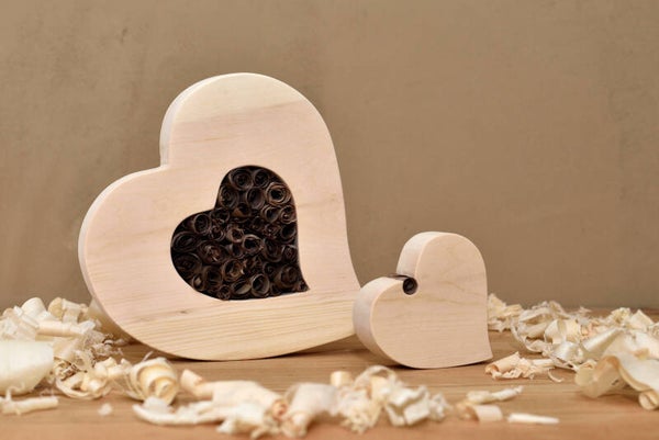 Die Zirbenherzen sind aus hochwertigem Zirbenholz gemacht und mit dunklen Nussbaumholzspänen gefüllt. Das helle Zirbenholz und das dunkle Nussholz sorgen für einen schönen Hell-Dunkel-Kontrast. Egal ob als romantisches Geschenk oder stilvolle Dekoration, diese Herzen bringen den natürlichen Charme der Zirbe direkt in Dein Zuhause.